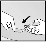 Слід визначити місце введення, яке знаходиться з внутрішнього боку плеча приблизно на 8 - 10 см вище медіального надвиростка плечової кістки. Імплантат слід вводити підшкірно, щоб запобігти пораненню нервово-судинного пучка між двоголовим та триголовими м’язами. |