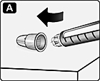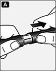 Перевірте назву інсуліну та силу дії за етикеткою на вашій шприц-ручці щоб бути впевненим, що вона містить препарат Райзодег ФлексТач 100 ОД/мл.Це особливо важливо, якщо ви застосовуєте більш ніж один тип інсуліну. Рис. А. Зніміть ковпачок зі шприц-ручки. |