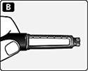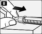 Рис. В. Після того як голказакрита,обережно притисніть зовнішній ковпачок до упору, потім відкрутіть голку. |