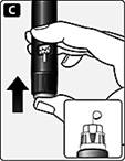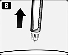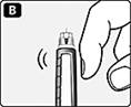 Рис. В. Утримуючи шприц-ручку вертикально голкою догори, декілька разів обережно постукайте пальцем по картриджу, щоб пухирці повітря зібралися у верхній частині картриджа. |