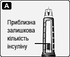 Рис. А. Шкала кількості інсуліну лише приблизно показує, скільки інсуліну залишилося в шприц-ручці. |