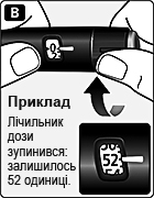 Можна набрати до 80 одиниць для однієї дози. Якщо шприц-ручка містить менше 80 одиниць, лічильник дози зупиниться на кількості одиниць, що залишились.