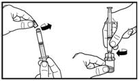 2. Підготуйте попередньо заповнений шприц шляхом приєднання стержня поршня. |