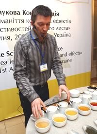 Обладая удивительной способностью распознавать по вкусу различные сорта чая (количество которых переваливает за отметку тысяча!), Крис продемонстрировал присутствующим на конференции специалистам и представителям прессы, процесс профессиональной дегустации чая и открыл секреты его правильного приготовления и хранения.