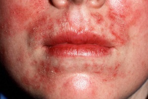 Червоний вовчак – аутоімунне захворювання сполучної тканини з неясною етіологією, що виявляється на шкірі еритемою, гіперкератозом і атрофією.