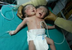 В Индии зарегистрирован случай редкой патологии беременности: рождение сросшихся близнецов, у которых на двоих только одно туловище. Мать детей не проходила УЗИ, так как у нее не было денег на эту процедуру, и не знала об аномалии до самых родов.