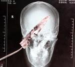 В последние месяцы житель китайской провинции Юньнань стал все чаще испытывать сильные головные боли, которые к тому сопровождались странным металлическим привкусом во рту. Первое же обследование показало, что в черепе пациента находится лезвие ножа длиной более 10-ти сантиметров. Шокированный новостью китаец оправился в другую, более крупную клинику, но и там результат рентгена был точно таким же. Лишь тогда больной вспомнил обстоятельства, при которых получил зловещий «подарок». Операция прошла успешно, но и видавшие виды хирурги не могут понять, как их пациент вообще остался жив, после того как огромное лезвие прошло через его шею, носоглотку и, сломавшись, осталось в мозге.