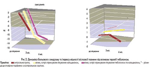Застосування Лівіалу в клініці в жінок у постменопаузальному періоді з порушенням структурно-функціонального стану КТ довело його ефективність у зниженні вираженості вертебрального больового синдрому, збільшенні індексу міцності КТ через 6 місяців лікування (рис. 2).