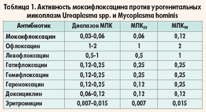 Активность моксифлоксацина против урогенитальных микоплазм Ureaplasma spp. и Mycoplasma hominis