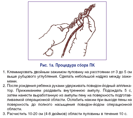Сбор ПК методом in utero осуществляется непосредственно после рождения ребенка до момента отделения последа и рождения плаценты [9-11].