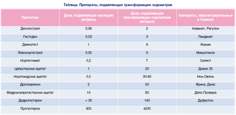 Однако не только выключение циклических процессов обусловливает представленные эффекты КОК. Немаловажное значение имеет также вид прогестина, входящего в состав применяющихся препаратов. Известно, что все прогестины способны в той или иной степени связываться с рецепторами прогестерона, и между ними существует целый ряд различий, например аффинитет к рецепторам прогестерона и величина антипролиферативного индекса (непосредственное влияние прогестинов на эндометрий). Безусловно, вызывают интерес препараты, которые в минимальных дозах способны оказывать благоприятный эффект на эндометрий, обладая выраженными антипролиферативными действиями [4].