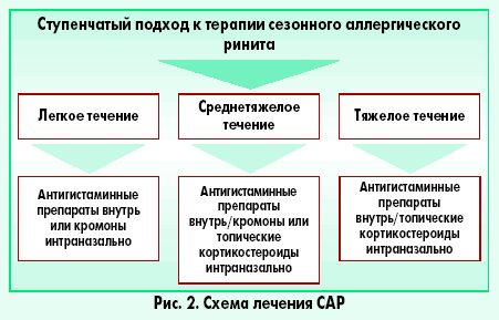 Естественно, в лечении КАР и САР есть существенные различия. Однако целесообразно, чтобы схема этой терапии носила ступенчатый характер. Так, для САР в период палинации растений следует придерживаться схемы, представленной на рисунке 2.