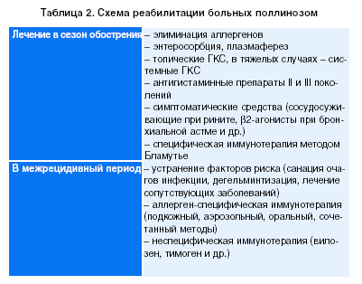 Следует подчеркнуть, что только после уточнения клинических особенностей поллиноза у больного, изучения спектра этиологически значимых аллергенов в возникновении болезни, степени нарушений бронхиальной проходимости, неспецифической чувствительности адрено- и холинорецепторов бронхов, а также изменений состояния иммунитета, расстройств функции других органов можно планировать реабилитационные мероприятия, направленные на снижение как специфической, так и неспецифической повышенной чувствительности к аллергенам.
