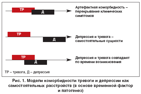 Первая гипотеза коморбидности предполагала независимость тревоги и депрессии, являющихся самостоятельными расстройствами (рис. 1).