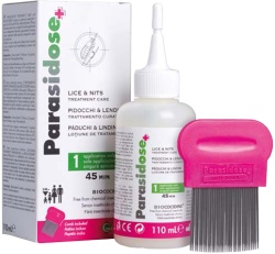 В упаковке препарата находится не только средство от вшей (флакон объемом 110 мл), но и металлический гребешок, необходимый для механического этапа лечения педикулеза. Дополнительным плюсом препарата является приятный запах жевательной резинки, который остается на волосах, нравится детям и облегчает процесс устранения вшей. Средство Паразидоз + (Parasidose+) надо наносить в достаточном количестве на влажные волосы ребенка, распределяя по всей длине. Через 45 минут волосы тщательно расчесываются частым гребешком для удаления погибших вшей и гнид, после чего голову надо вымыть дважды с применением любого детского шампуня. - средство, эффективное в лечении вшей у детей, что доказано специализированной лабораторией по исследованию эктопаразитов.