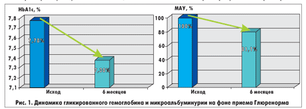 Через 6 месяцев на фоне улучшения гликемического контроля у 18,9% пациентов достигнута нормоальбуминурия.
