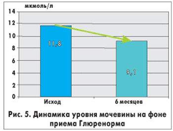 Лечение Глюренормом в течение 6 месяцев не сопровождалось ухудшением функции почек, что подтверждает безопасность длительного применения препарата у больных СД 2 типа даже на стадии начальной ХПН.