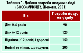 Добову потребу в йоді офіційно затверджено ВООЗ і Міжнародною радою з контролю за ЙДЗ (МРКЙДЗ) (табл. 1).