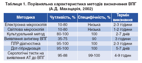 Необхідно враховувати, що більшість наявних комерційних тест-систем не є типоспецифічними (наприклад, РСК і багато ІФА тестів). Тобто ці дослідження не вважають значимими щодо підтвердження генітальної форми ВПГ-інфекції [5]. Потрібні аналізи на основі застосування глікопротеїду G (gG1, gG2) або вестерн блоттінг.