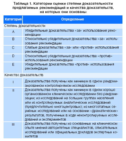 К настоящему времени по диагностике и лечению острых кишечных инфекций накоплено большое количество сведений, содержащихся в отдельных статьях и руководствах. Ценность тех или иных рекомендаций для практического врача определяется, в первую очередь, их соответствием принципам доказательной медицины. С этой точки зрения большой интерес представляют рекомендации Американского общества инфекционных болезней [5], которые основаны на доказательных данных и сопровождаются характеристикой качества доказательств (оцениваются по шкале от I до III) и степени достоверности рекомендаций (оцениваются по шкале от А до Е, табл. 1 ).