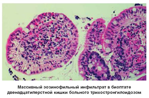 Для некоторых кишечных гельминтозов характерны развитие проктита, анальный и перианальный зуд (энтеробиоз, тениидозы, стронгилоидоз, трихоцефалез). В результате длительного присутствия паразитов в органах пищеварения происходят нарушения процессов всасывания, в первую очередь белков и витаминов, потеря железа, что при недостаточности питания ведет к резкому ослаблению и астенизации больных.