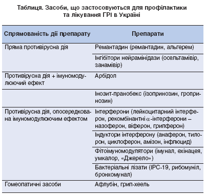 На сьогодні в Україні зареєстровано більше 10 імуно-хіміотерапевтичних засобів, що рекомендуються для профілактики та лікування ГРІ (таблиця).