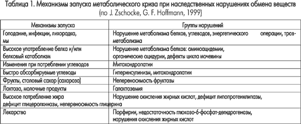 Механизмы запуска метаболических нарушений разнообразны, наиболее конкретно они представлены J. Zschocke, G. Hoffman (табл. 1).