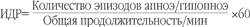 Степень выраженности синдрома сонного апноэ оценивают по индексу дыхательных расстройств (ИДР), который высчитывается по формуле [25, 26]: