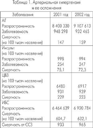Эффективное лечение больных АГ — действительно очень сложная проблема. Давайте рассмотрим данные статистики и попытаемся определить, к чему привело увеличение распространенности АГ в Украине за последние два года. Как видно из таблицы 1, распространенность АГ привела к увеличению числа цереброваскулярных заболеваний (ЦВЗ), ишемической болезни сердца (ИБС), к увеличению смертности от АГ, ИБС и сердечно-сосудистых заболеваний (ССЗ). И это логично. Нелогичными и непонятными остаются уменьшение заболеваемости инсультом, а также механизмы снижения смертности от инсульта и ЦВЗ. Возникает вопрос, от чего же тогда умирают больные АГ?