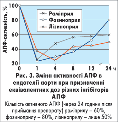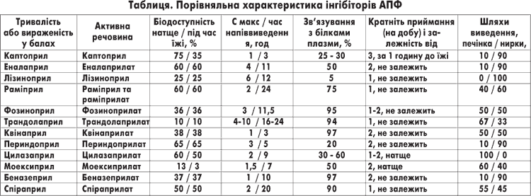 З позицій комплайєнтності оптимальним слід вважати одноразове приймання препарату. Проте слід вказати, що цій вимозі відповідають далеко не всі ІАПФ (табл.): лише лізиноприл, раміприл, трандолаприл, спіраприл, периндоприл. Крім того, препарати короткої дії не завжди забезпечують захист серцево-судинної системи в ранкові години — час найбільшої ймовірності розвитку судинних подій.