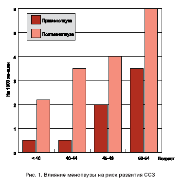 Наступление менопаузы ассоциируется с атерогенными сдвигами в липидном профиле сыворотки крови: с увеличением общего холестерина, триглицеридов и холестерина липопротеинов низкой плотности (ЛПНП), снижением уровня холестерина ЛПВП. Уровень холестерина ЛПНП у женщин в постменопаузе выше, чем у мужчин соответствующего возраста. Являются ли эти изменения прямым следствием дефицита эстрогенов, неясно. Возможно, они вторичны относительно перераспределения жировой ткани и снижения чувствительности тканей к инсулину, которое наблюдается в постменопаузе. Терапия эстрогенами приводит к увеличению уровня холестерина ЛПВП и снижению уровня холестерина ЛПНП [16]. В исследовании Women’s Health Іnіtіatіve (WHI) продемонстрировано отрицательное влияние ЗГТ на сердечно-сосудистую заболеваемость у женщин в постменопаузе. В то же время следует отметить недостатки этого исследования: поздний возраст пациенток, которым назначали ЗГТ (в среднем – 62 года), неудачный выбор прогестероновой составляющей ЗГТ (медроксипрогестерона ацетат – один из наиболее атерогенных гестагенов), что обусловило инициацию проводимых в настоящее время новых многоцентровых исследований, дизайн которых более корректен.
