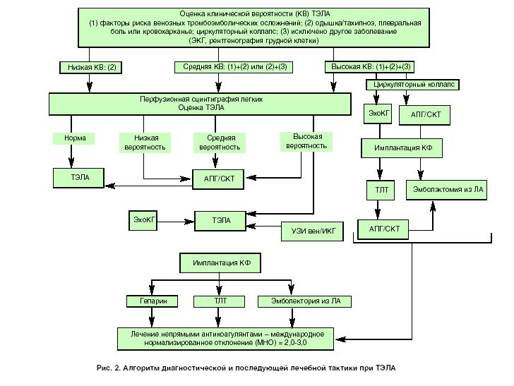 Алгоритм диагностической и последующей лечебной тактики при ТЭЛА представлен на рисунке 2..