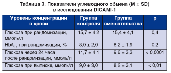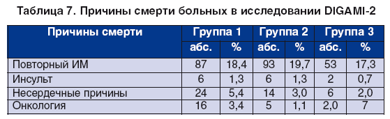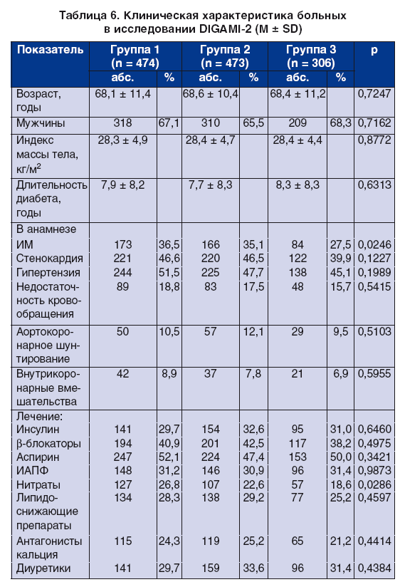 Данные, противоречащие всем ранее известным фактам, еще раз подтверждают трудность распространения выводов, полученных в DIGAMI-1, на всю популяцию больных СД с острым ИМ.