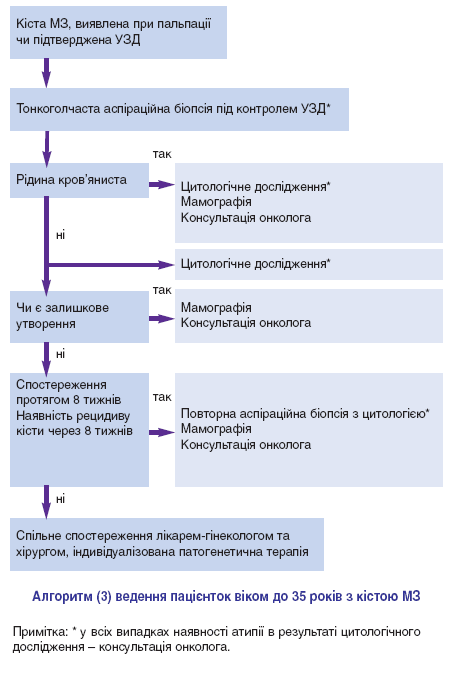 Алгоритм (3) ведення пацієнток віком до 35 років з кістою МЗ