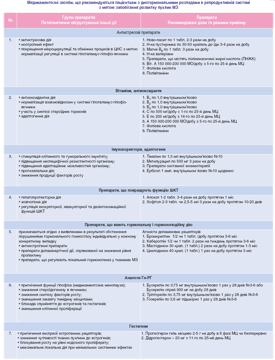 Медикаментозні засоби, що рекомендуються пацієнткам з дисгормональними розладами в репродуктивній системі з метою запобігання розвитку пухлин МЗ