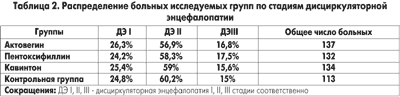 Распределение больных по стадиям дисциркуляторной энцефалопатии представлено в таблице 2.