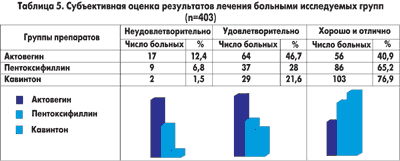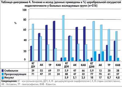 Динамика течения церебральной сосудистой недостаточности у пациентов, получавших примененную терапию, представлена в таблице-диаграмме 4.