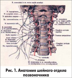 Вегетативные нарушения при остеохондрозе шейного отдела позвоночника развиваются в связи с особыми условиями формирования кровообращения в вертебро-базилярном сосудистом бассейне, а также с наличием прямых иннервационных связей вегетативных ганглиев шеи с церебральными сосудами.