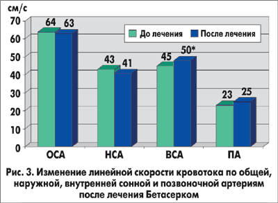 По данным ультразвуковой допплерографии отмечалось увеличение линейной скорости кровотока в бассейне внутренней сонной и позвоночной артерий (рис. 3).