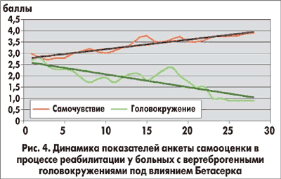 Проведенный анализ литературы, результаты собственных наблюдений свидетельствуют об эффективности Бетасерка в комплексном лечении больных с вертеброгенными головокружениями, улучшении их качества жизни.