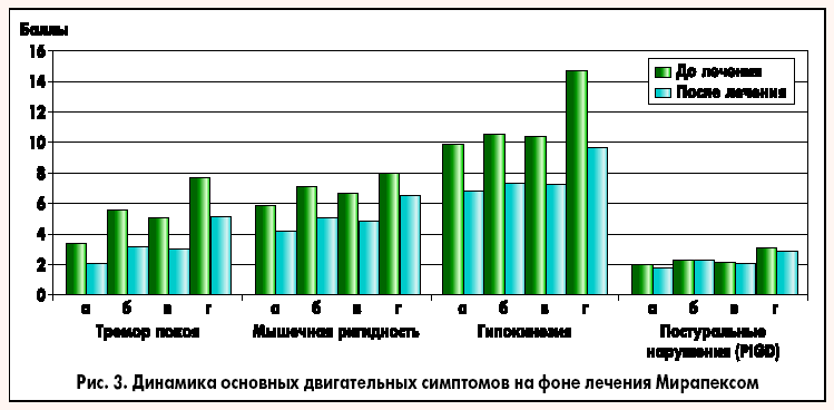 Динамика основных двигательных проявлений болезни Паркинсона при терапии Мирапексом