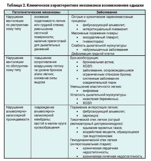 Вышеперечисленные механизмы возникновения одышки мы попытались систематизировать и описать с точки зрения клиницистов в таблице 2.