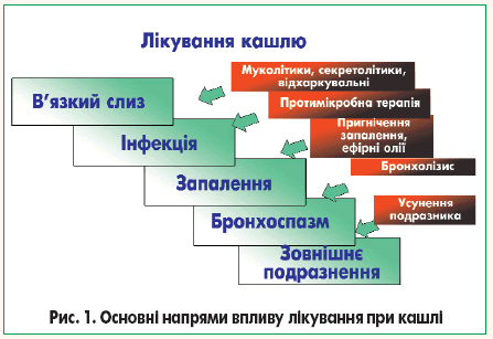 Запальна реакція – головна ланка патогенезу кашлю, тому раціонально призначити протизапальну терапію. За показаннями застосовують бронхолітики, і звичайно ж рекомендується відмова від паління.