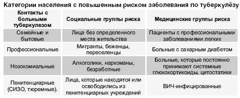 Категории населения с повышенным риском заболевания по туберкулёзу