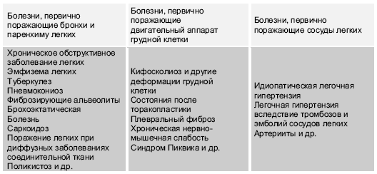 Существуют три группы заболеваний, приводящих к развитию ХЛС: