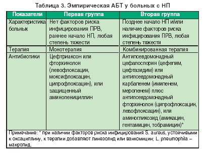 Этиология НП во многом зависит от сроков возникновения заболевания. Различают раннюю и позднюю НП (табл. 1). Раннюю НП чаще всего вызывают пневмококк, гемофильная палочка, золотистый стафилококк, чувствительные к оксациллину, а также антибиотикочувствительные грамотрицательные энтеробактерии: