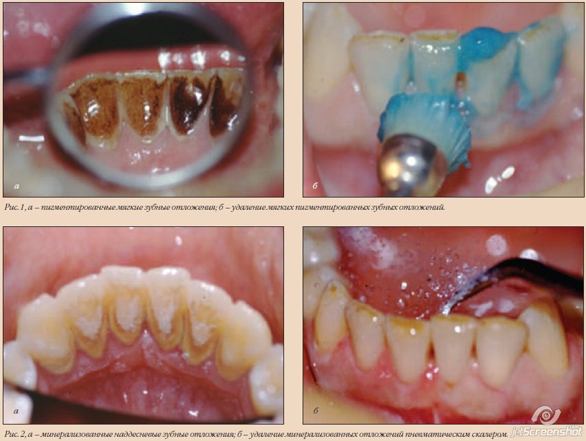 Известно, что единственным этиотропным лечением и профилактикой кариеса и пародонтита является устранение патогенных микроорганизмов, т.е. адекватная гигиена полости рта [1, 2]. Несмотря на многочисленные публикации, посвященные гигиене полости рта, и наличие на современном рынке разнообразных гигиенических средств, состояние гигиены полости рта у подавляющего большинства населения остается неудовлетворительным. Так, из пациентов, обратившихся к нам в 2014 г., только 10% не нуждались в удалении зубных отложений и коррекции протокола гигиенического ухода за полостью рта. Все эти пациенты были повторными. Среди первичных пациентов нуждаемость в профессиональной гигиене составила 100%. Это значит, что в 100% случаев первое посещение врача-стоматолога отведено профессиональной гигиене полости рта. Наличие только мягких зубных отложений (зрелой биопленки), расположенных в пришеечной и апроксимальных областях зубов, как правило, встречается у пациентов с сохраненным зубодесневым прикреплением, т.е. с диагнозом «гингивит». Наличие минерализованных над- и поддесневых отложений указывает на разрушение зубодесневого прикрепления у пациентов с диагнозом «пародонтит».