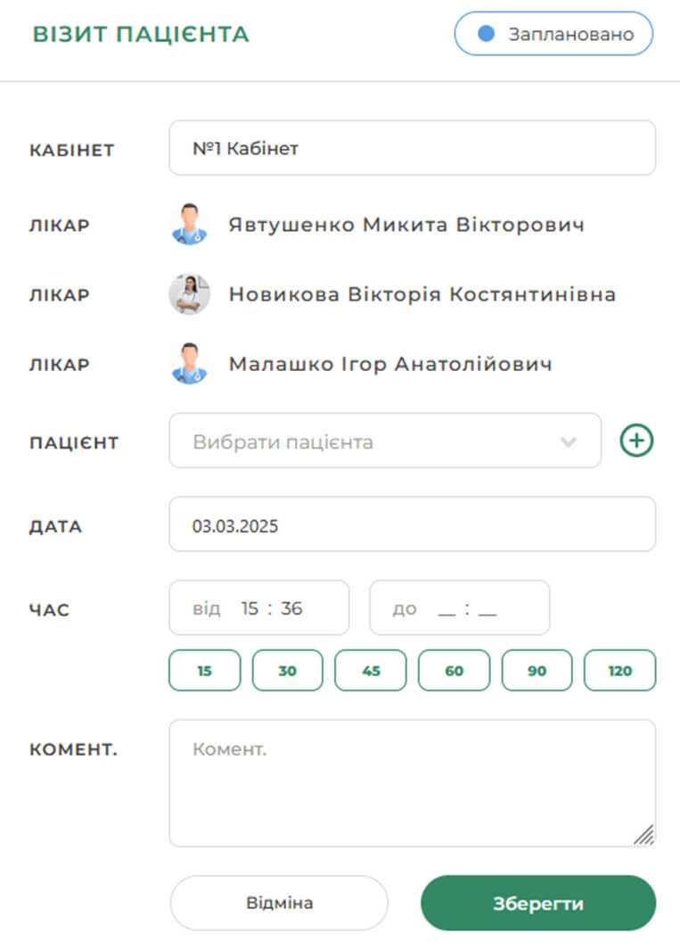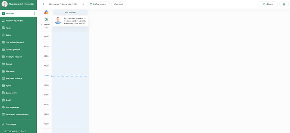 На етапі налаштувань, я прописав у програмі свій графік роботи, а система сама сформувала календар. Зараз, я можу записати пацієнта на прийом за лічені хвилини: обираєш пацієнта, вказуєш час — і готово. Всі дані зберігаються, а блокнот пішов "на пенсію".