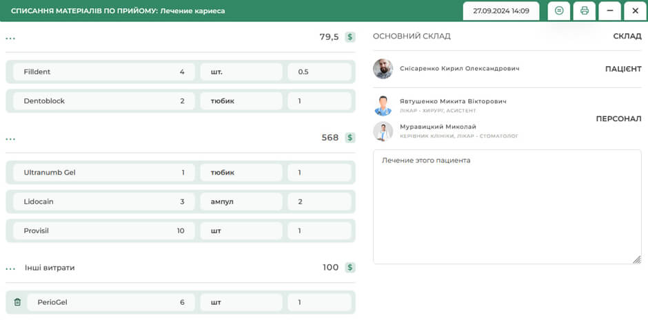 Тобто я раз вніс в систему, що на чистку йде стільки-то матеріалів, і все — далі програма сама все вираховує. Якщо щось змінюється — редагую в пару кліків.