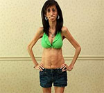Лиззи Веласкес недавно исполнился 21 год, она учится в университете, но при росте 157,6 см девушка весит всего 25,5 кг. И пресловутая анорексия здесь ни при чем: редчайшее заболевание не дает откладываться на ее теле ни капле жира. Лиззи вынуждена есть практически каждые 15 минут – в противном случае силы покинут ее. В то время как миллионы ее соотечественниц тщетно сражаются с избыточным весом, Лиззи испытывает огромную радость, если ей удается поправиться хотя бы на 1 фунт: прибавка в весе на 0,454 г – огромное достижение для нее. Но, несмотря на все трудности ее бытия, девушка сохраняет оптимизм и чувство юмора.